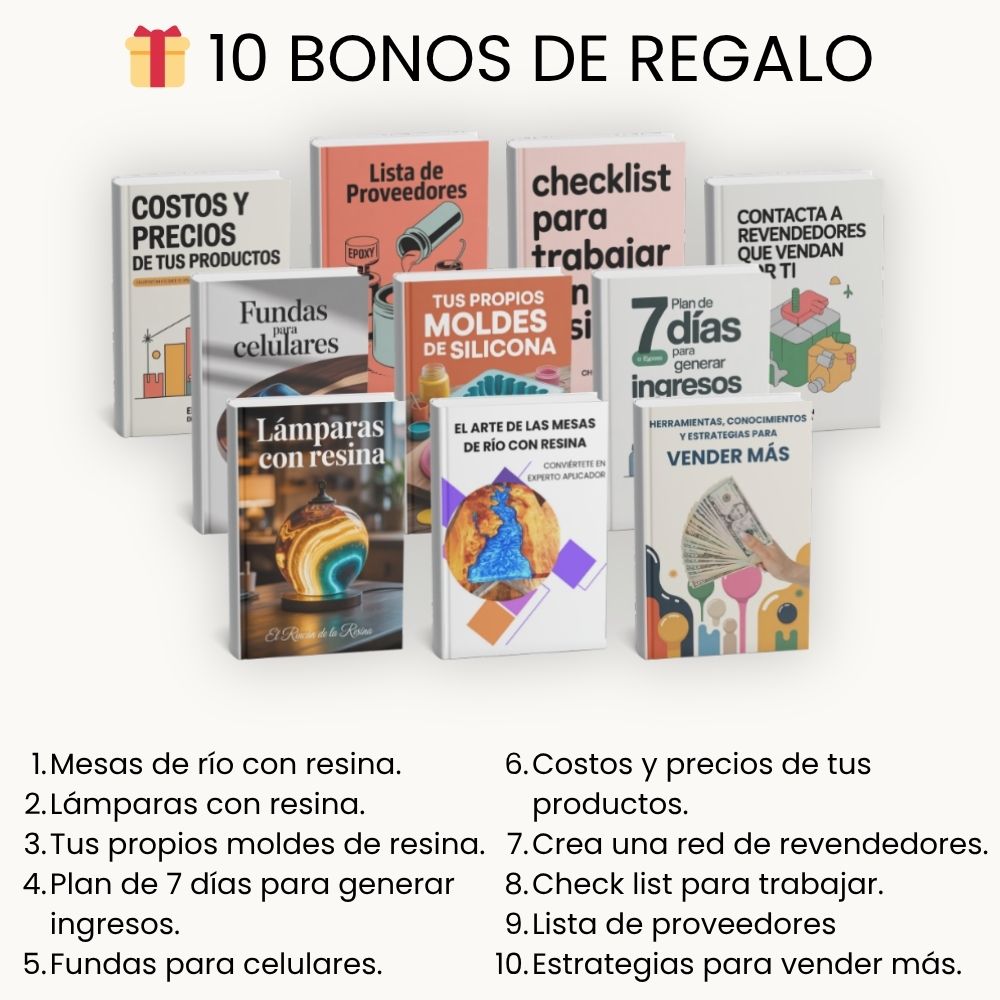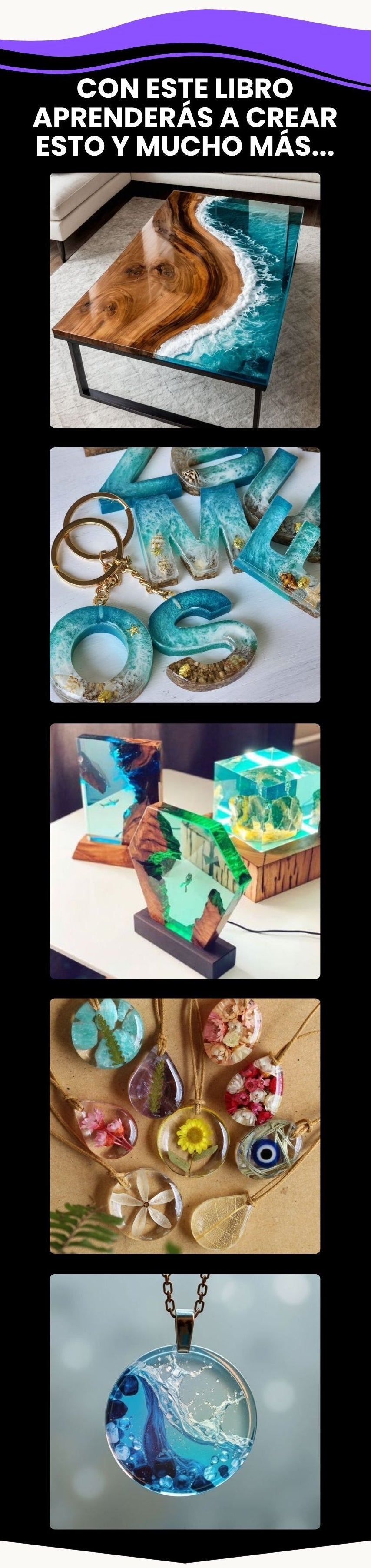 Recibirás archivos digitales en formato PDF que podrás descargar directamente desde tu correo. No necesitas esperar ni depender de envíos físicos: tu libro estará listo para comenzar a transformar resina en arte en cuestión de minutos.